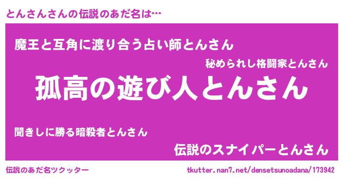 | ヒーロー風カッコイイあだ名 | 『暗黒騎士トン』『慈愛の使者とんさん』 |