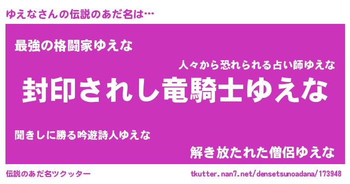 | ヘコむあだ名 | 『ゆえにー』『レバニラ』『ゆえを』 |