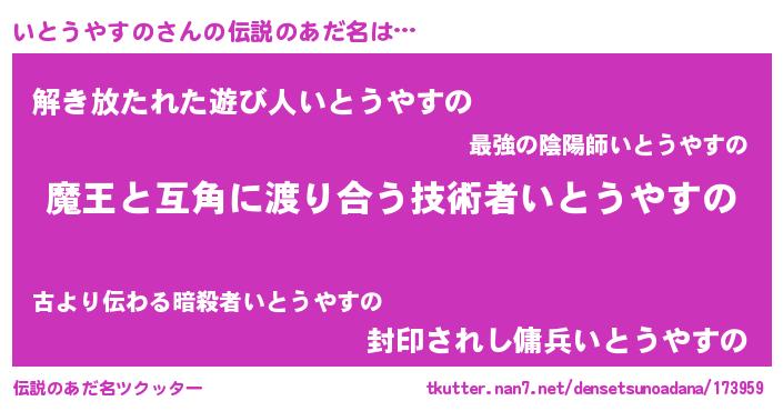 | ヒーロー風カッコイイあだ名 | 『友情の使者いとうやすの』 |