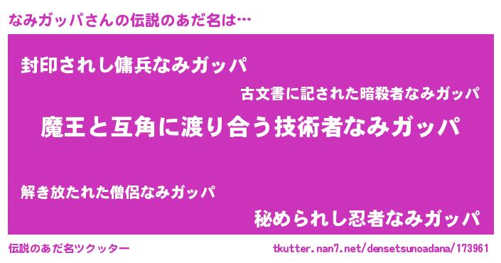 | ヒーロー風カッコイイあだ名 | 『愛の使者なみガッパ』『仮面ナミダー』 |