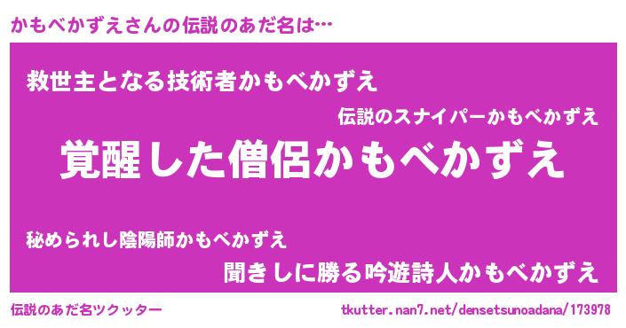 | 意味不明あだ名 | 『とにかく怪しいかもべかずえ』 |