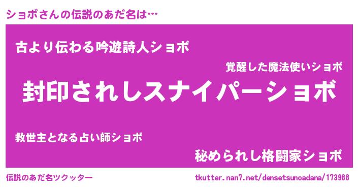 | ヒーロー風カッコイイあだ名 | 『最強戦士ショボ』『スーパーショボ』 |