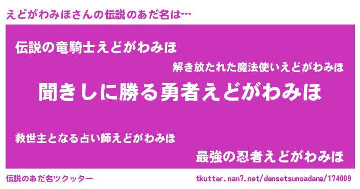 | 男性向けラノベタイトル風あだ名 | 『えどがわみほという概念が存在しない退屈な世界 』 |