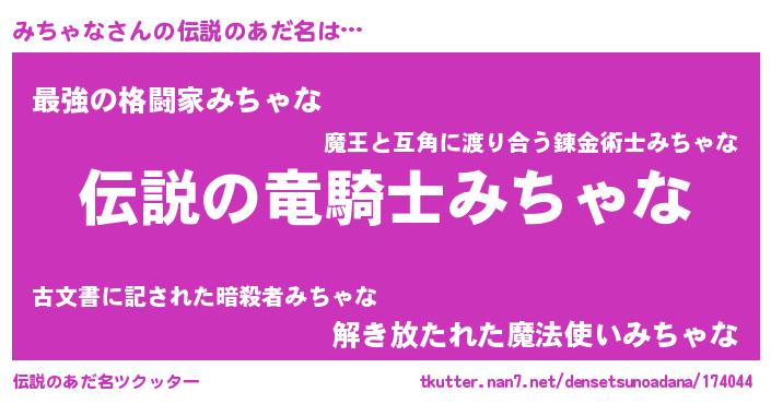 | 胡散臭い通販商品みたいなあだ名 | 『必ず成功するブレスレット…その名も「みちゃな」』 |