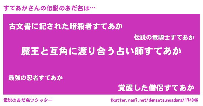 | 意味不明あだ名 | 『住所不定無職すてあか(68歳)』 |