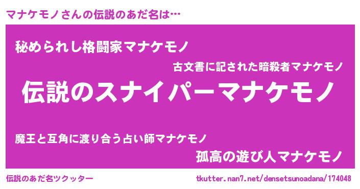 | 胡散臭い通販商品みたいなあだ名 | 『必ず成功する霊験あらたかなお札…その名も「マナケモノ」』 |
