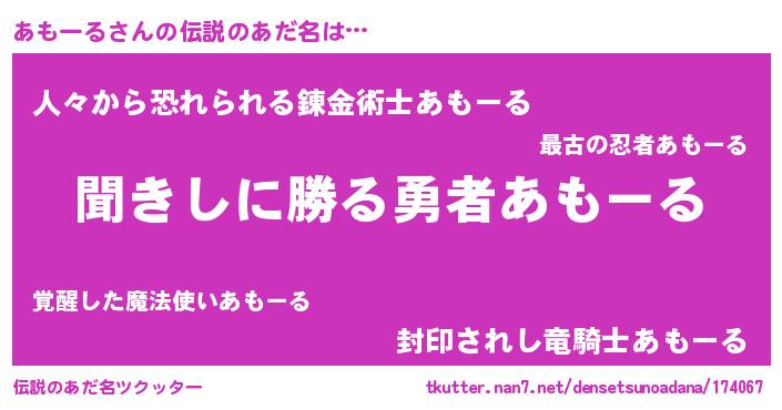 | 意味不明あだ名 | 『永久保存あもーる』『自称あもーる』 |