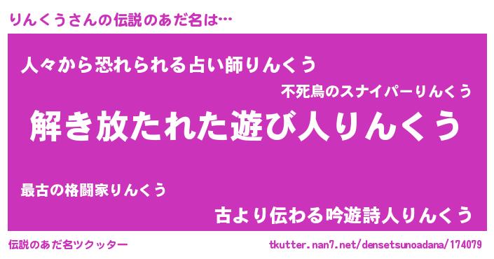 | 意味不明あだ名 | 『とにかく怪しいりんくう』 |
