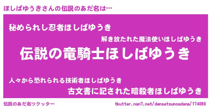 | 胡散臭い通販商品みたいなあだ名 | 『必ず成功するブレスレット…その名も「ほしばゆうき」』 |