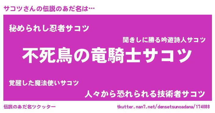 | 女子向けラノベタイトル風あだ名 | 『サコツ姫と円卓の騎士』 |