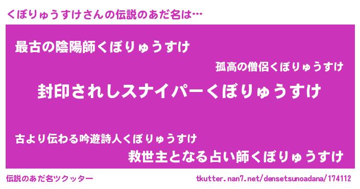 | 胡散臭い通販商品みたいなあだ名 | 『億万長者になれる霊験あらたかなお札…その名も「くぼりゅうすけ」』 |