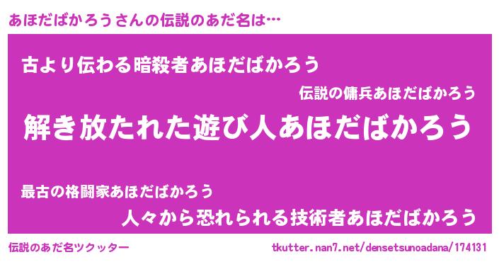 | 意味不明あだ名 | 『とにかく怪しいあほだばかろう』 |