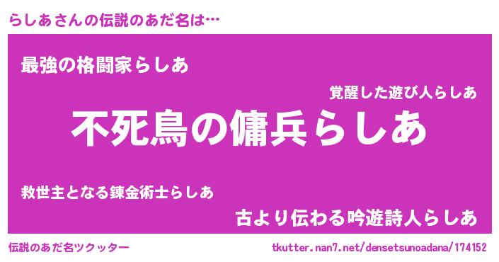| ファンタジー風あだ名 | 『ラシフェル』『ユリラシヴァット』 |