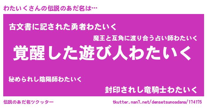 | ヒーロー風カッコイイあだ名 | 『最強戦士ワタイク』『炎刃騎士ワタ』 |