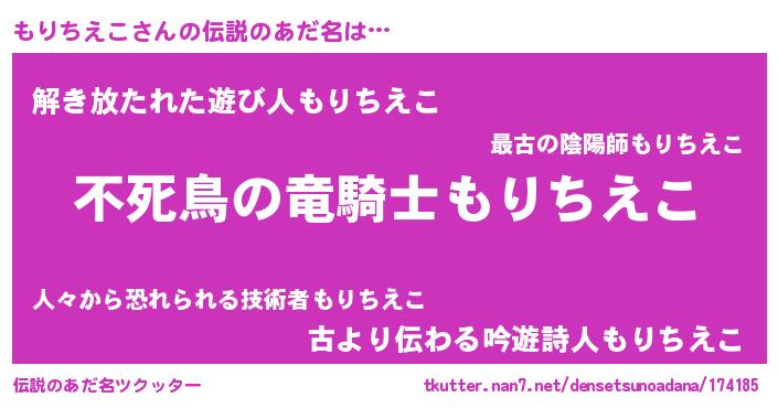 | 欧米人風あだ名 | 『もりちえこ・ステッグマイヤー』 |