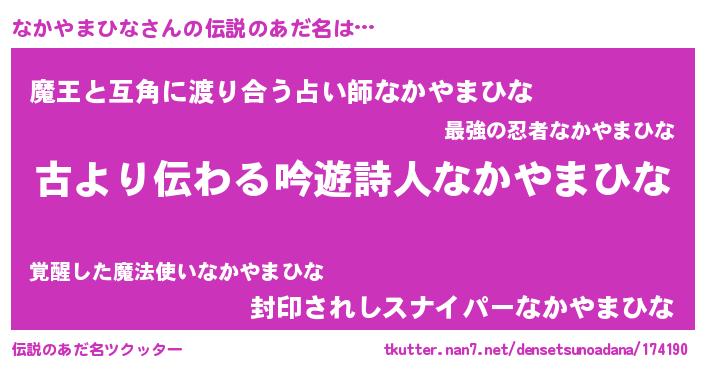| 意味不明あだ名 | 『永久保存なかやまひな』 |
