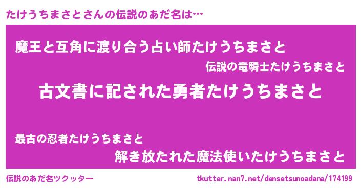 | 肩書あだ名 | 『たけうちまさと大将』 |