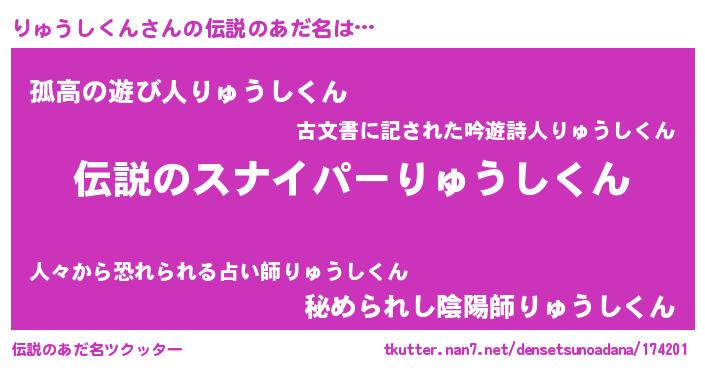 | 男性向けラノベタイトル風あだ名 | 『りゅうしくんの憂鬱』 |