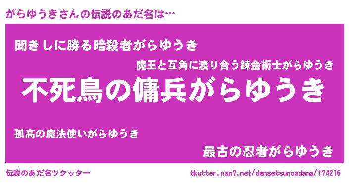 | ヘコむあだ名 | 『がらふぇ~』『がらゆうき(小並感)』 |