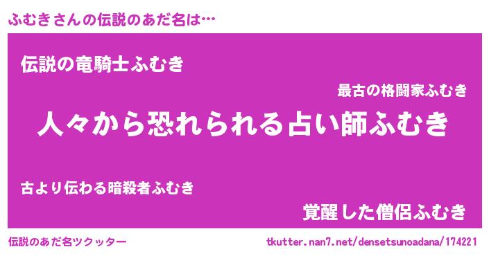 | 意味不明あだ名 | 『住所不定無職ふむき(43歳)』 |