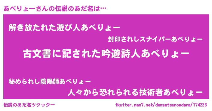 | ヘコむあだ名 | 『あべりょー(笑)』『あべお』 |