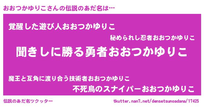 | 意味不明あだ名 | 『永久保存おおつかゆりこ』 |