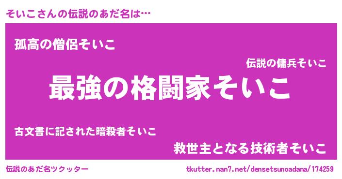 | 意味不明あだ名 | 『そいこフォーエバー』『自称そいこ』 |
