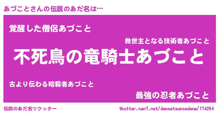 | 男性向けラノベタイトル風あだ名 | 『転生したらあづことだった件』 |