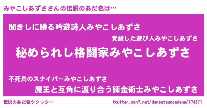 | ファンタジー風あだ名 | 『エターナルミヤコシアズサー』 |