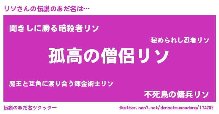| 胡散臭い通販商品みたいなあだ名 | 『信頼と実績のネックレス…その名も「リソ」』 |