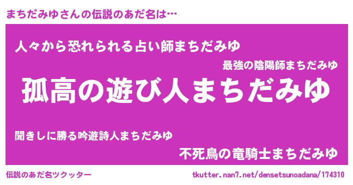 | 意味不明あだ名 | 『住所不定無職まちだみゆ(74歳)』 |