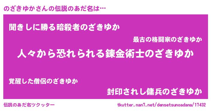 | ヒーロー風カッコイイあだ名 | 『友情の使者のざきゆか』『仮面ノザダー』 |