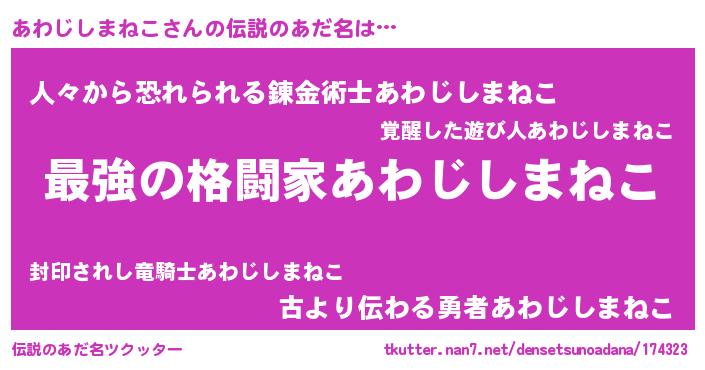 | 意味不明あだ名 | 『あわじしまねこフォーエバー』 |