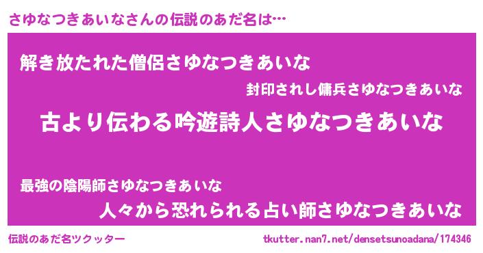 | ヒーロー風カッコイイあだ名 | 『ネオサユナツキアイナ』『天弓騎士サユ』 |