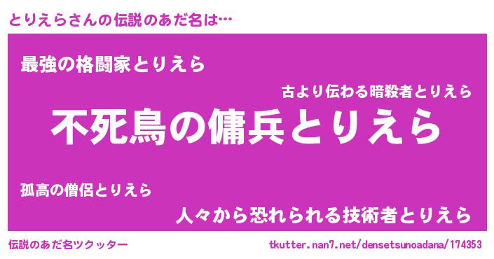 | 意味不明あだ名 | 『自称とりえら』『ペロリンとりえら』 |