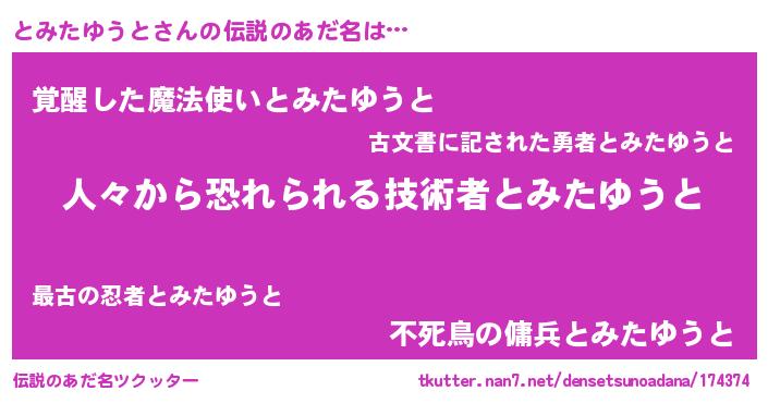 | 胡散臭い通販商品みたいなあだ名 | 『100人中100人が認めたマグネット磁石…その名も「とみたゆうと」』 |