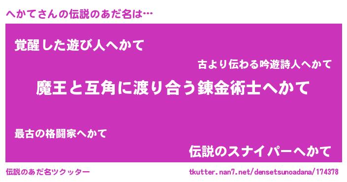 | ヒーロー風カッコイイあだ名 | 『愛の使者へかて』『仮面ヘカダー』 |