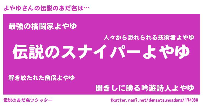 | 胡散臭い通販商品みたいなあだ名 | 『必ず成功する霊験あらたかなお札…その名も「よやゆ」』 |
