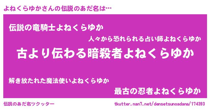 | 意味不明あだ名 | 『たけのこ科よねくらゆか属』 |