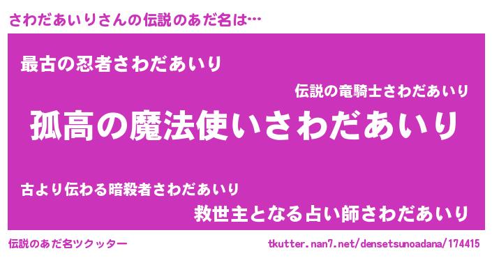 | 意味不明あだ名 | 『住所不定無職さわだあいり(4歳)』 |