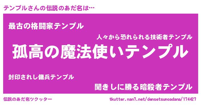 | 男性向けラノベタイトル風あだ名 | 『緋弾のテンプル』『テンプルスレイヤー』 |