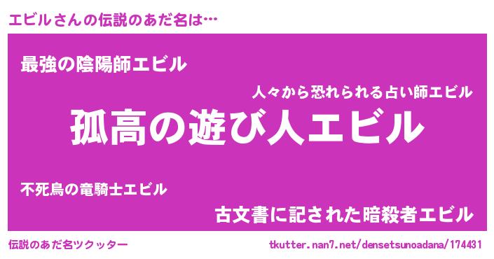 | 意味不明あだ名 | 『住所不定無職エビル(74歳)』『自称エビル』 |