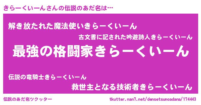 | 意味不明あだ名 | 『きらーくいーんフォーエバー』 |