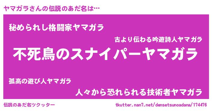 | ヒーロー風カッコイイあだ名 | 『スーパーヤマガラ』『仮面ヤマダー』 |