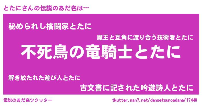 | 女子向けラノベタイトル風あだ名 | 『とたにアンティーク』 |