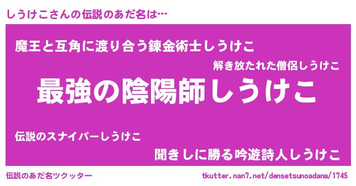 | 男性向けラノベタイトル風あだ名 | 『しうけこに滅ぼされるだけの簡単なお仕事です』 |
