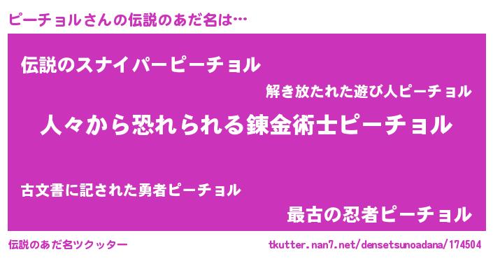 | ポケモン風あだ名 | 『ピーーイ』『ピックウザ』 |