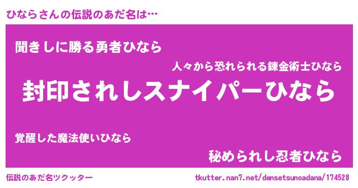 | 胡散臭い通販商品みたいなあだ名 | 『億万長者になれる霊験あらたかなお札…その名も「ひなら」』 |