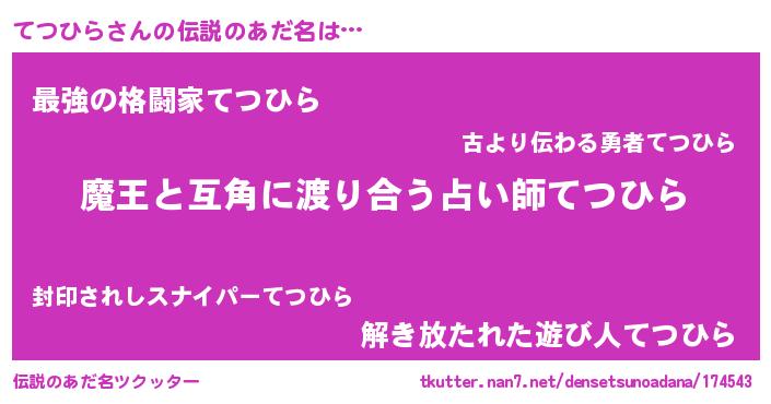 | ヒーロー風カッコイイあだ名 | 『慈愛の使者てつひら』『仮面テツダー』 |