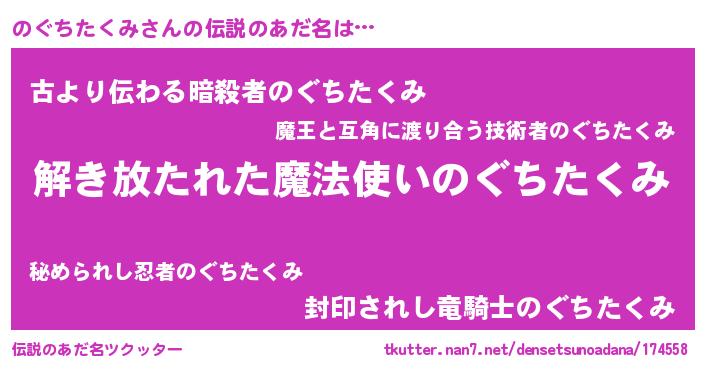 | 欧米人風あだ名 | 『ウサインのぐちたくみ』 |